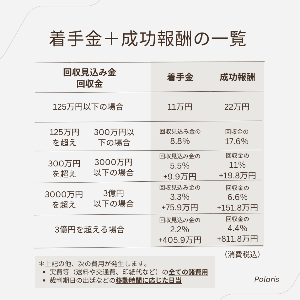 - 訴訟となった場合の第一審までの報酬を含みます。